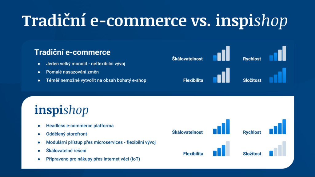 […] Největší výhodou headless přístupu je nezávislost jednotlivých modulů viz srovnání s monolitickým řešením níže. Co je to headless e-commerce a její výhody si můžete přečíst v příspěvku Jak to dělá Amazon: Headless e-commerce je budoucnost. […]
